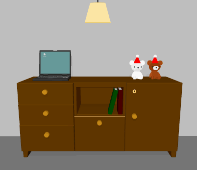 ねこのてさんの小人探し脱出ゲームの第三弾です。クリスマスな部屋から鍵と小人さんを探して脱出します。